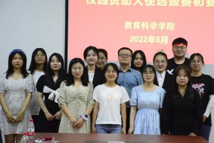 为了能够让同学们对高校教育资助政策更加熟知,选拔各学院奖助宣传精英,壮大延安大学资助“宣传大使”队伍。为此,我院于2022年5月30日晚七点特举办“我为资助代言” 校园资助大使选拔赛。到场的评委有:教育科学学院辅导员康程程老师、研究生会主席韩威、副主席韩雅馨、宣传部部长魏芯、研究生会瞿亚,研究生会党彬心。