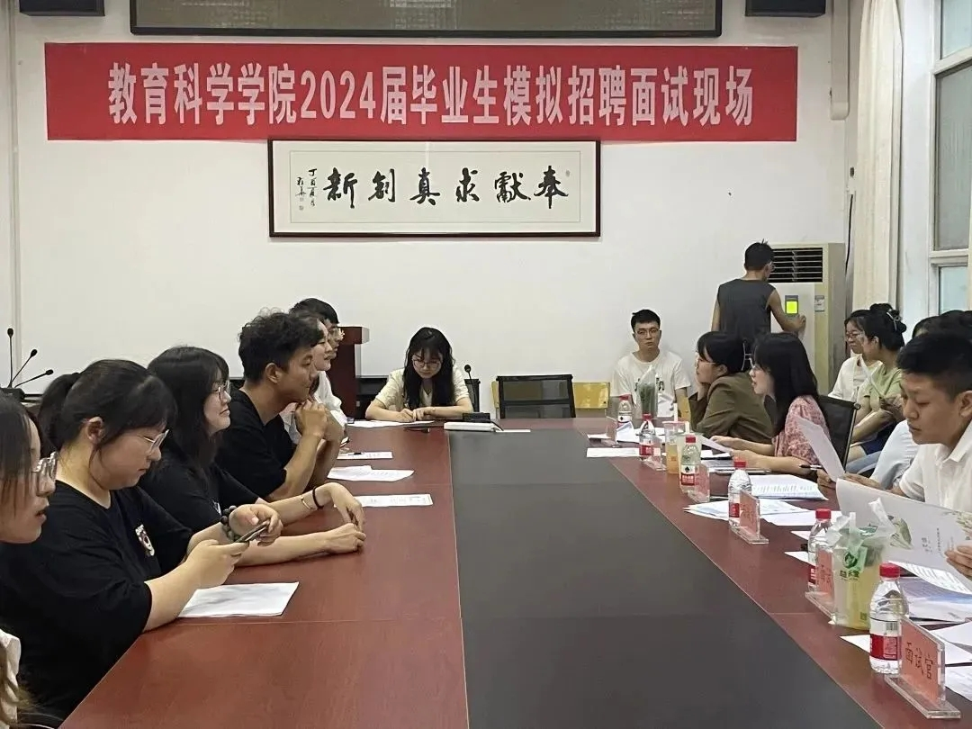 为进一步完善学生生涯规划教育与就业指导服务体系,引导学生扎实做好职业定位与就业准备,帮助同学们提升专业素养,提高就业竞争力,7月6日晚,我院于如心楼会议室举行了2024届毕业生简历设计大赛暨模拟招聘会。本次招聘会邀请延安市城市管理监督指挥中心副科长苏盼,在延安宝塔区大中小学任教的延安大学教育科学学院优秀校友贺阳阳、王会、梁家瑞、蔡元强、贾永娟、吴锐、韩雅馨等老师为面试官,我院2020级部分同学参加模拟面试,由王浩老师主持。