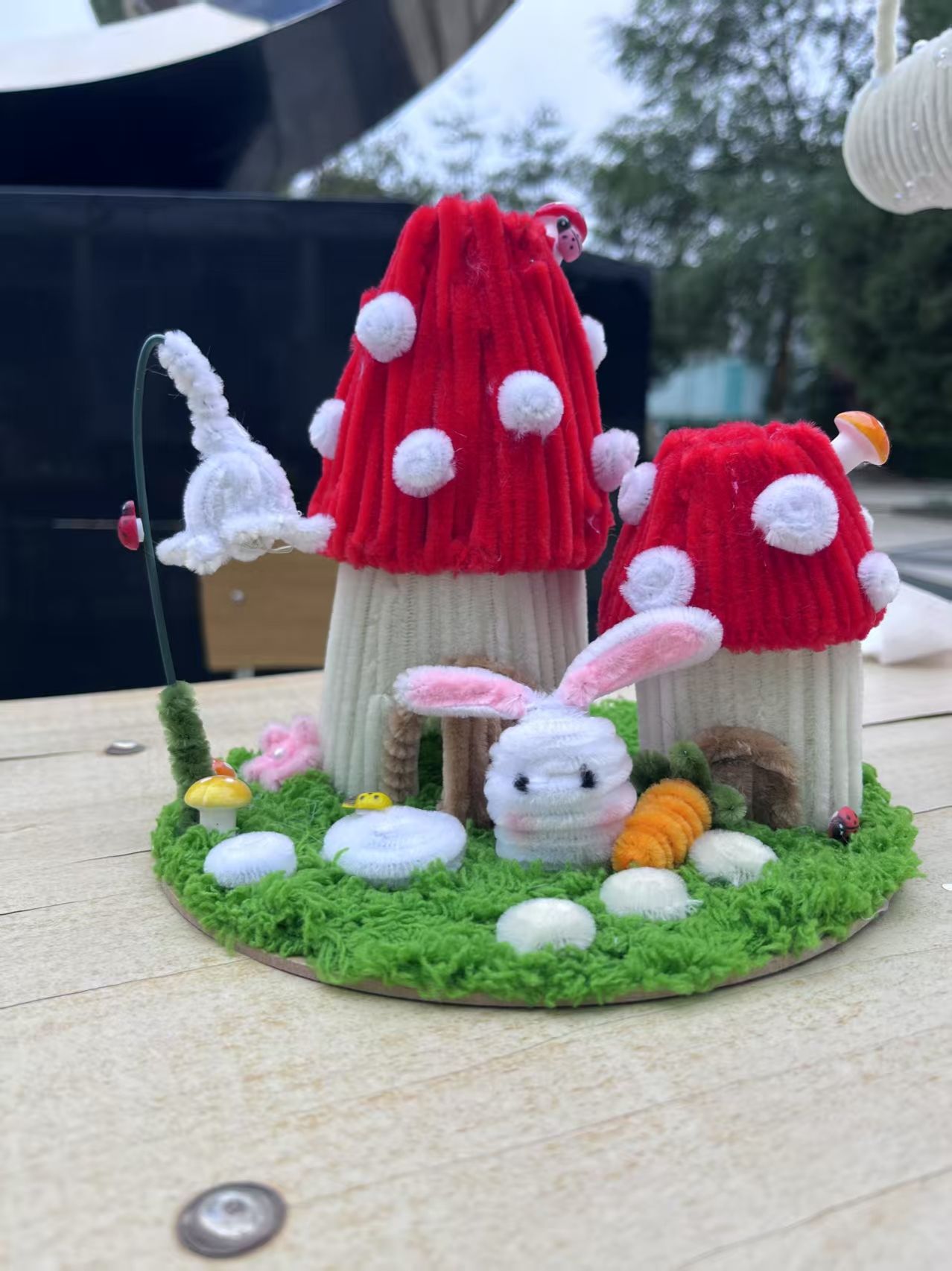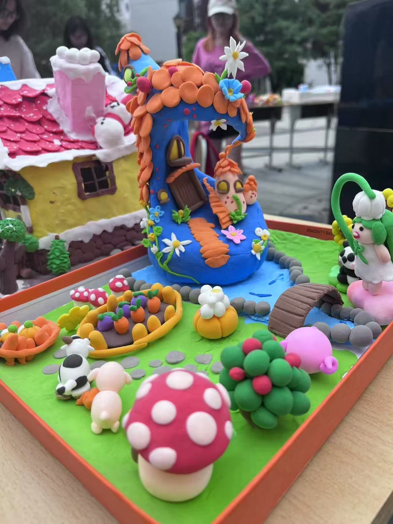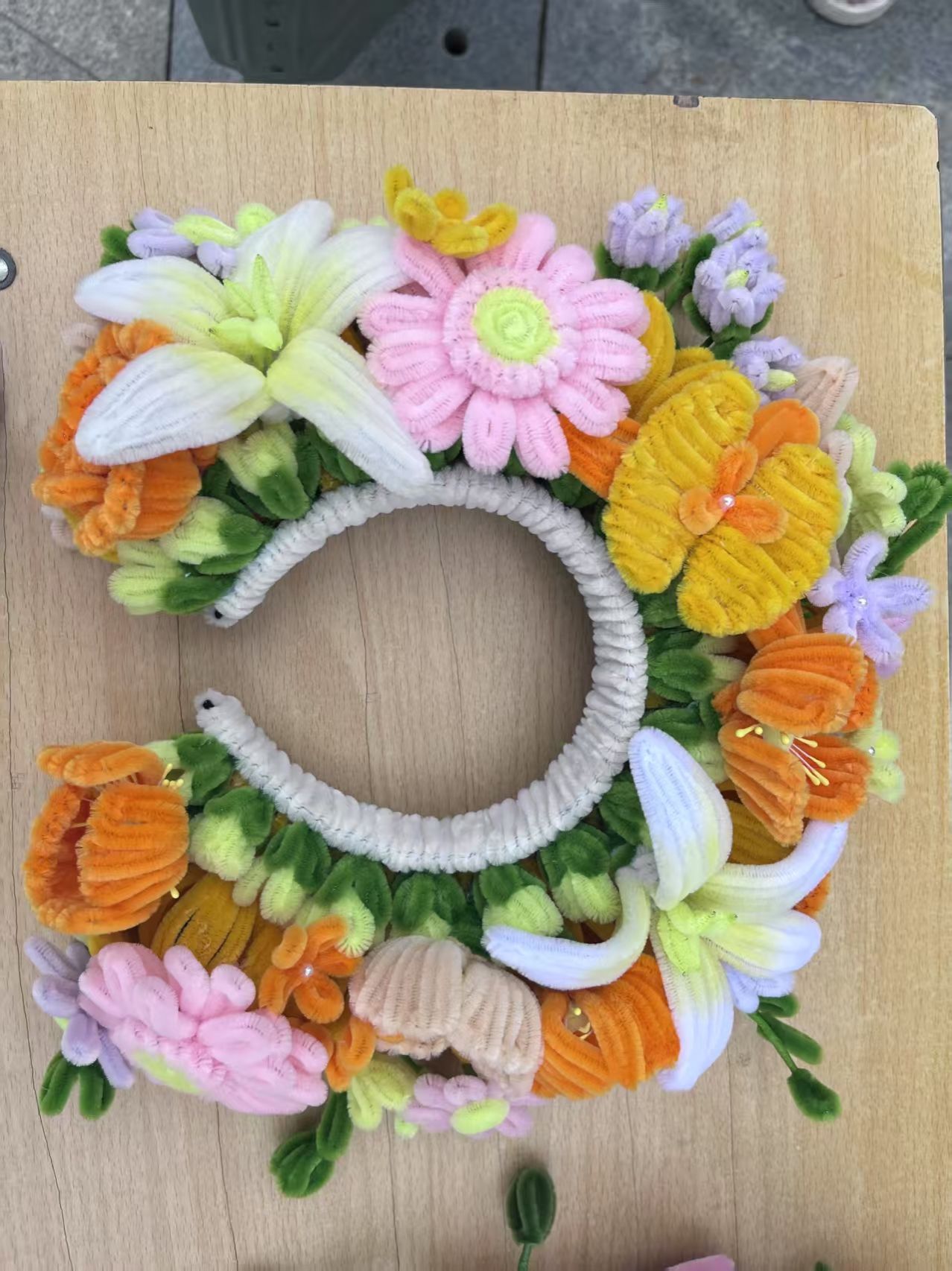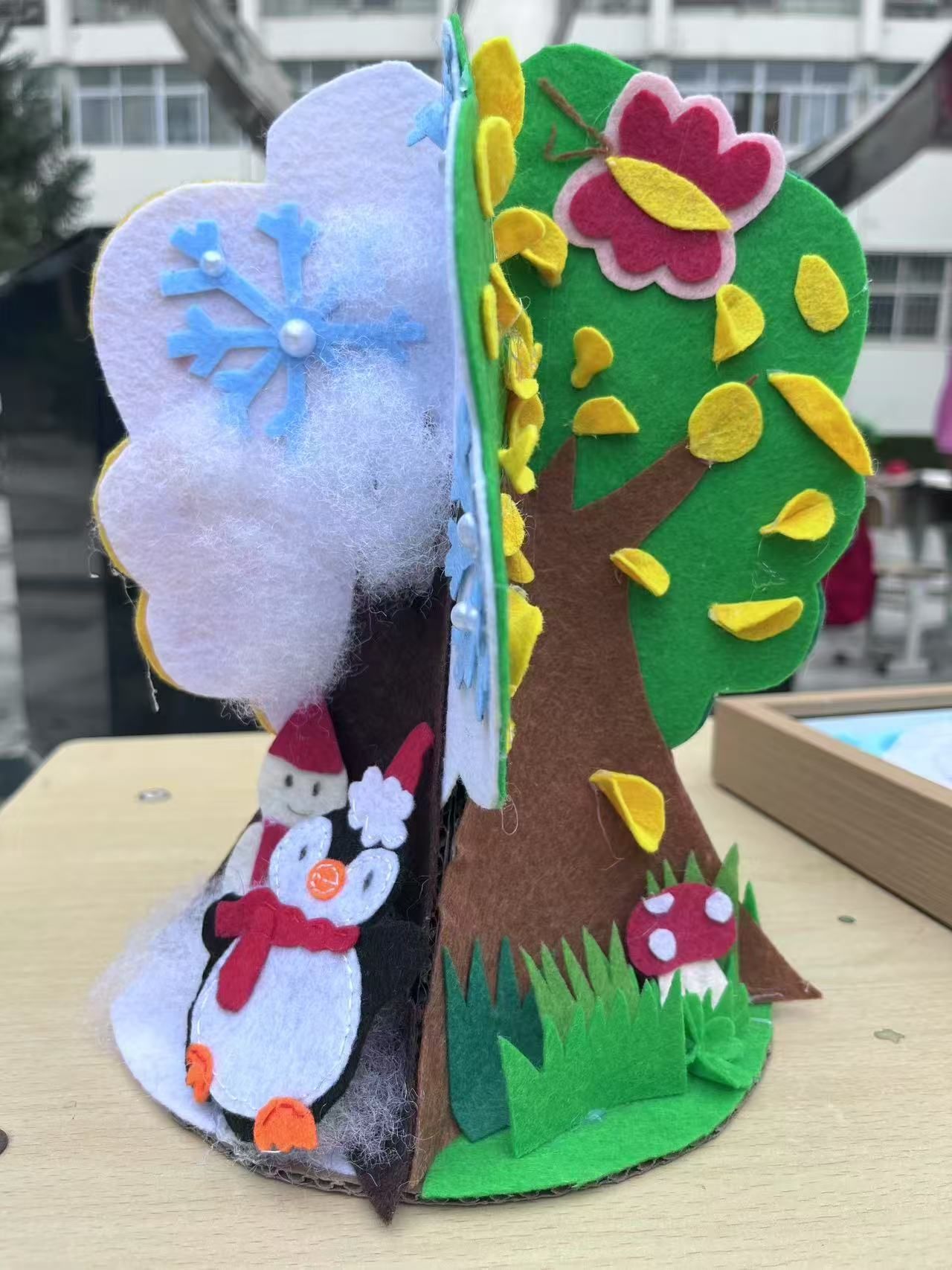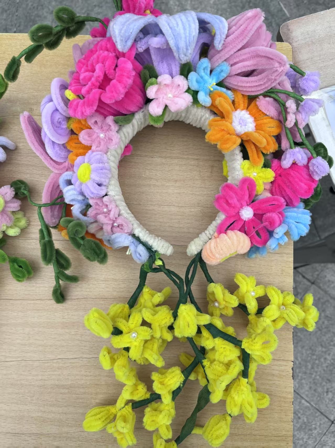 在这些作品中有衍纸生花,彩色纸条被巧妙卷曲、粘贴,形成了娇艳的花朵和灵动的蜻蜓,仿佛是流动的色彩诗篇;扭扭棒焕彩,用扭扭棒制作的的簪花花环,如同春天里最美的风景,插在花瓶中的扭扭棒花束,散发着温馨的气息;泡泡泥造境趣,将泡泡泥变成形态各异的大自然生物、灵动的珊瑚与神秘的礁石,构建出一个充满想象力的微观世界,将生肖形象以手工形式呈现于时钟表盘,既让传统生肖文化变得直观可感,又赋予时钟艺术价值;织布织梦,用不织布缝制,凭借丰富色彩与别致造型,创作出生动形象,传递温暖质朴的美感。