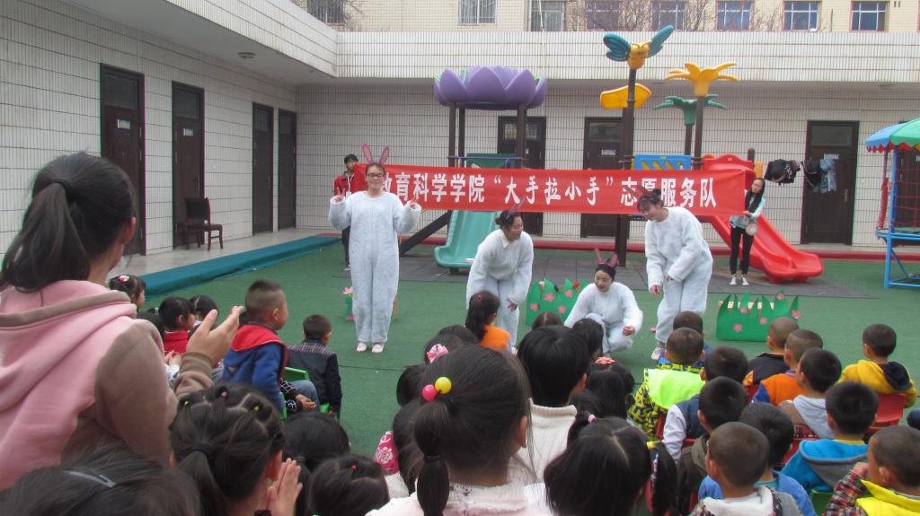 2015年3月27日,我院积极响应校团委大力弘扬雷锋精神的号召,辅导员高飞翔带领我院“大手拉小手”义务演出队(学前13全体同学组成)赴延安大学附属幼儿园开展义演活动。
