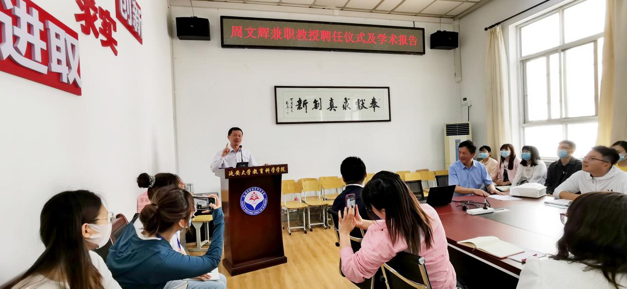 6月18日上午,教科院在我校杨家岭校区如心楼二楼会议室举行北京理工大学研究员、博士生导师、《学位与研究生教育》杂志社执行主编周文辉兼职教授聘任仪式暨学术报告会。我校副校长杨伟宏、人事处副处长高岩,教科院党政领导及学校、学院部分教师和学生代表参加了聘任仪式。活动由教科院院长刘瑞儒教授主持。