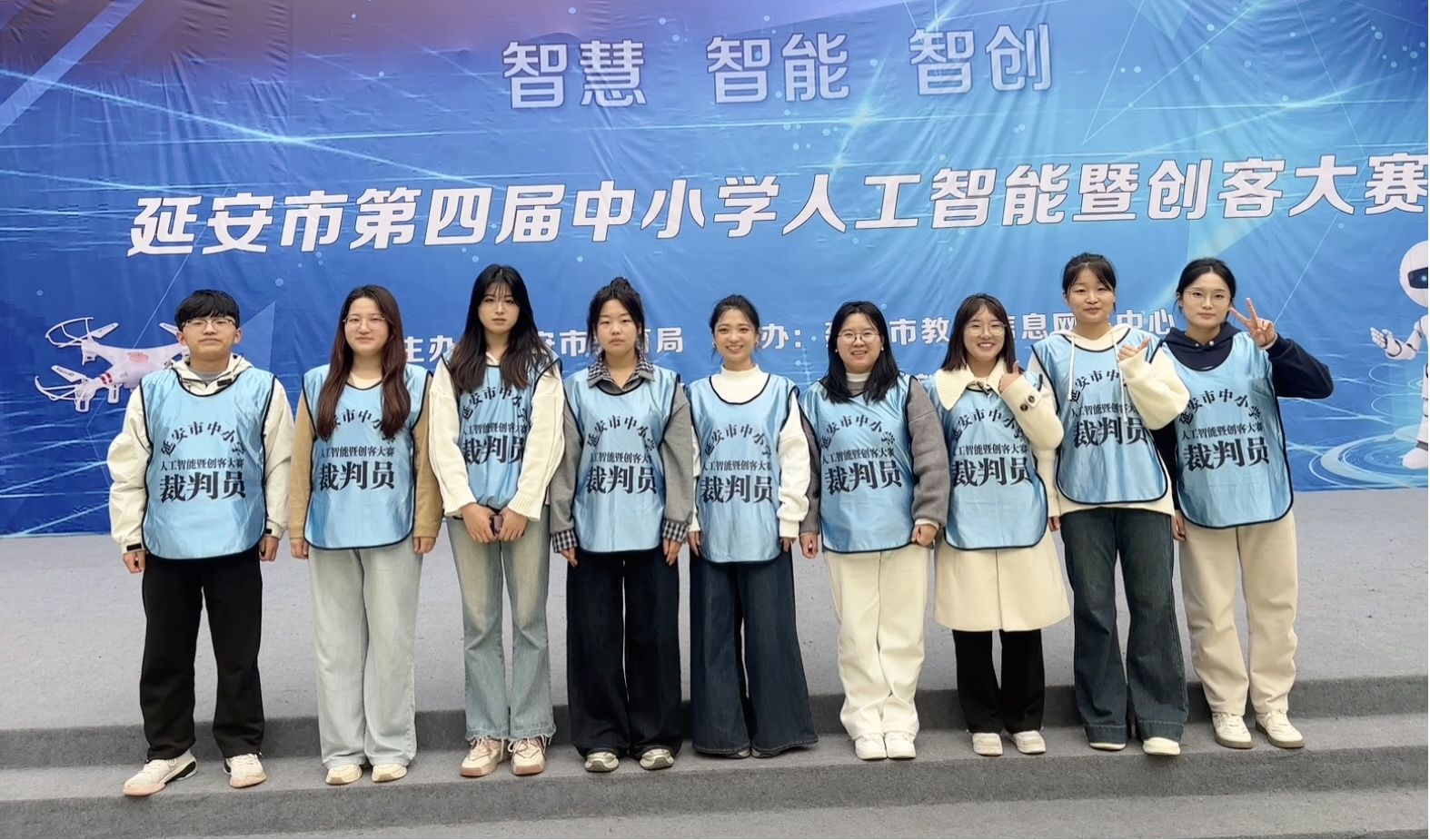 2024年11月9日,延安市第四届中小学人工智能暨创客大赛在延安市新区第二小学和新区第五幼儿园成功举办,吸引了众多学生和教育界的关注。受大赛组委会邀请,延安大学教科院组织教育技术本、硕学生及其它学院学生成立了志愿者服务团队,为大赛的顺利进行提供了专业技术服务和赛事组织保障工作,为大赛的成功举办做出了重要贡献。