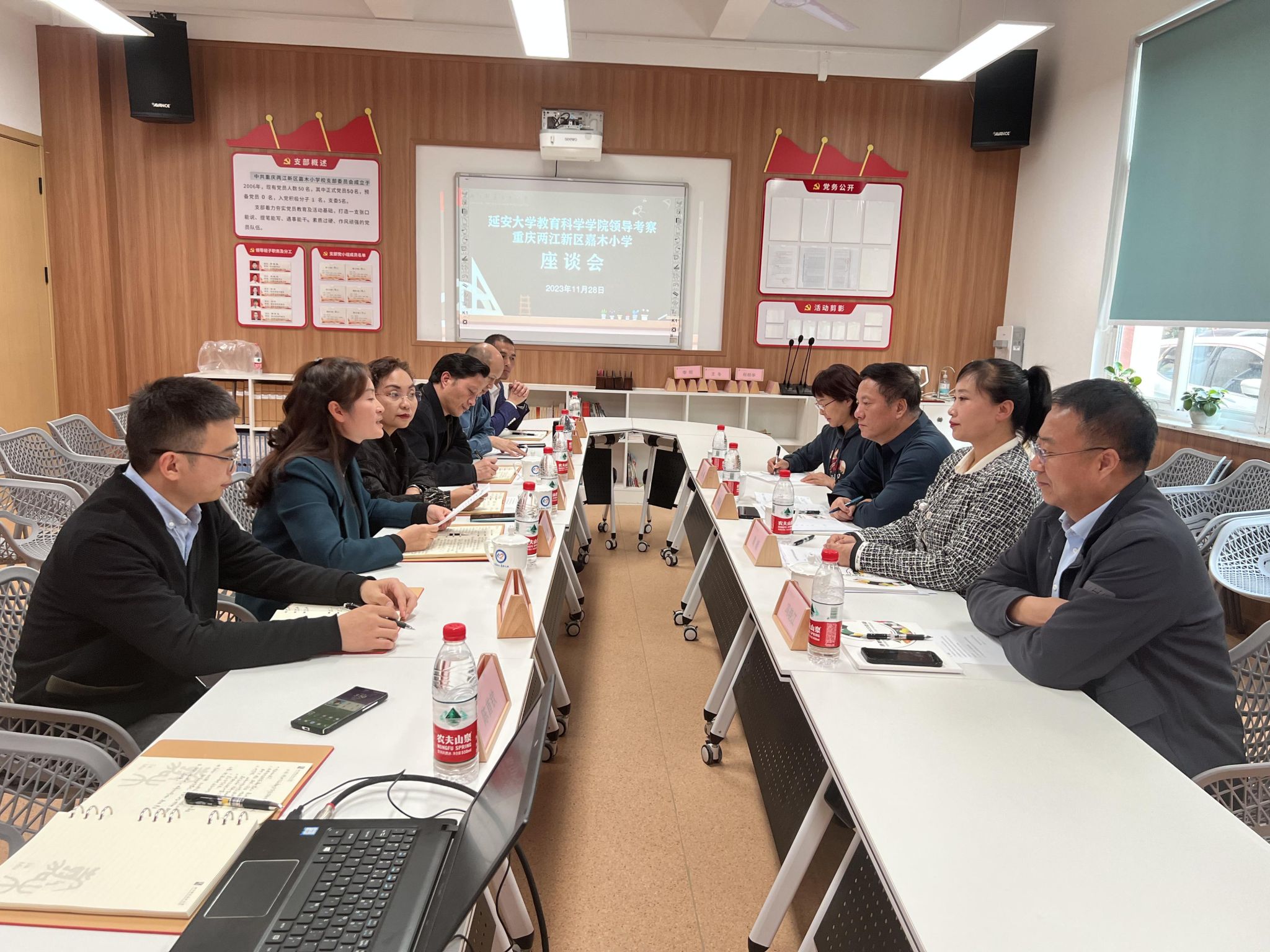 29日,走访了重庆两江新区嘉木小学校。嘉木小学校书记/校长李俊淑、副书记龙长江、副校长任杰等校领导和我院教育学专业2010级毕业生王黎同学参加了座谈会。会上,双方领导介绍了各自学校学院基本情况。嘉木小学校领导对我院人才培养质量予以充分肯定,同时结合新时代基础教育对教师能力素质的新要求,提出了我院进一步优化人才培养质量的建议。随后刘瑞儒院长与李俊淑校长代表两校签署了毕业生就业协议,并授予嘉木小学校“延安大学实习就业基地”牌子。座谈会后还参观了嘉木小学校校园和劳动实践课成果。