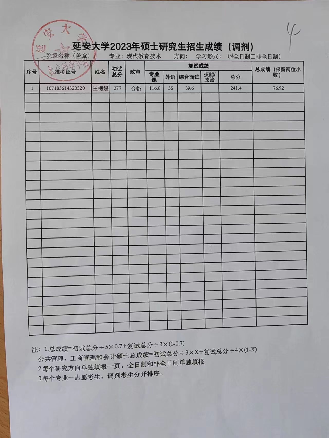 上一条:延安大学教育科学学院2023年硕士研究生招生成绩-调剂