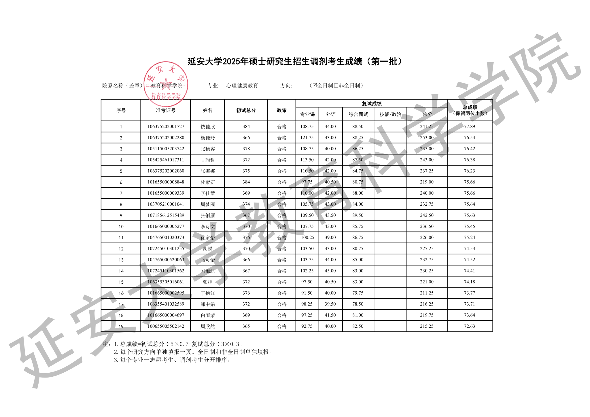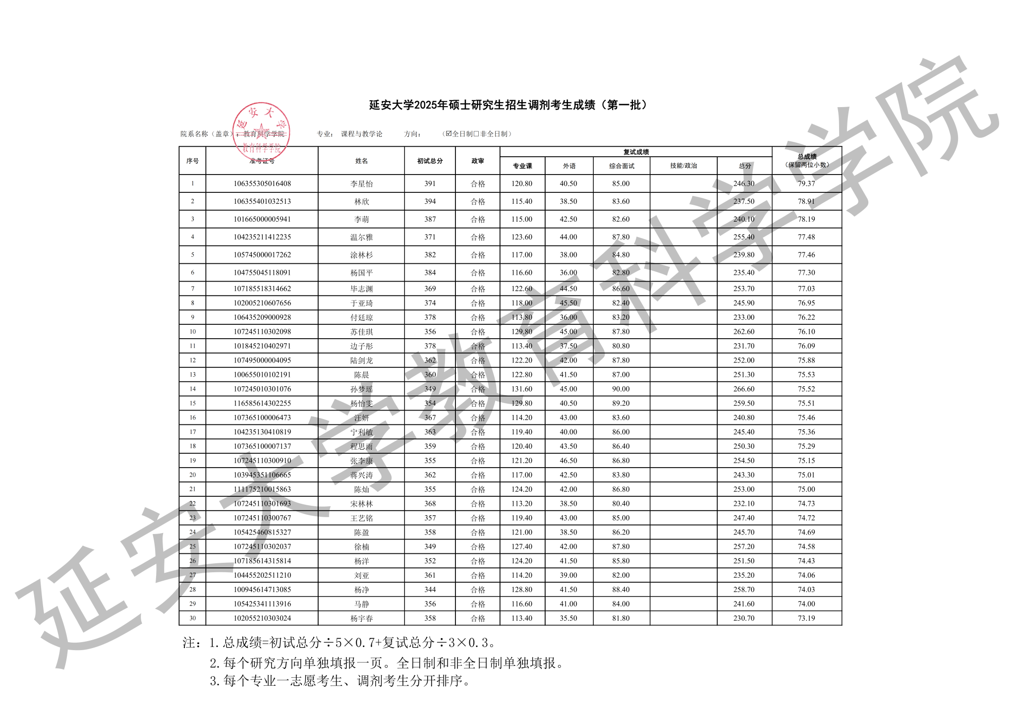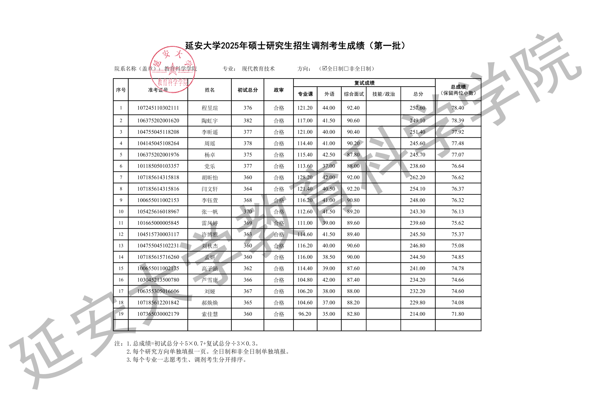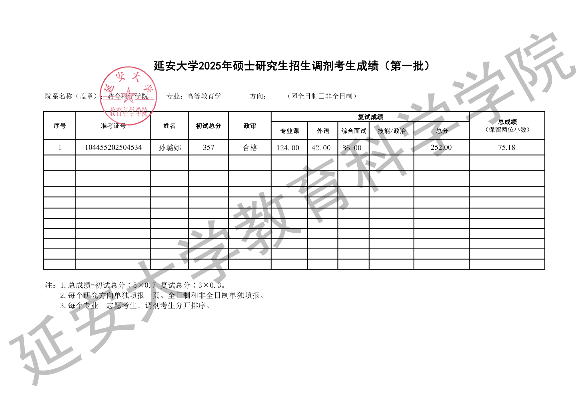 我院2025年硕士研究生招生第一批调剂考生复试工作已经结束,经研究生院核准,现将考生成绩予以公示,公示期为十个工作日。