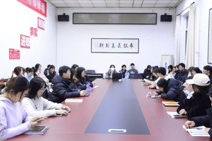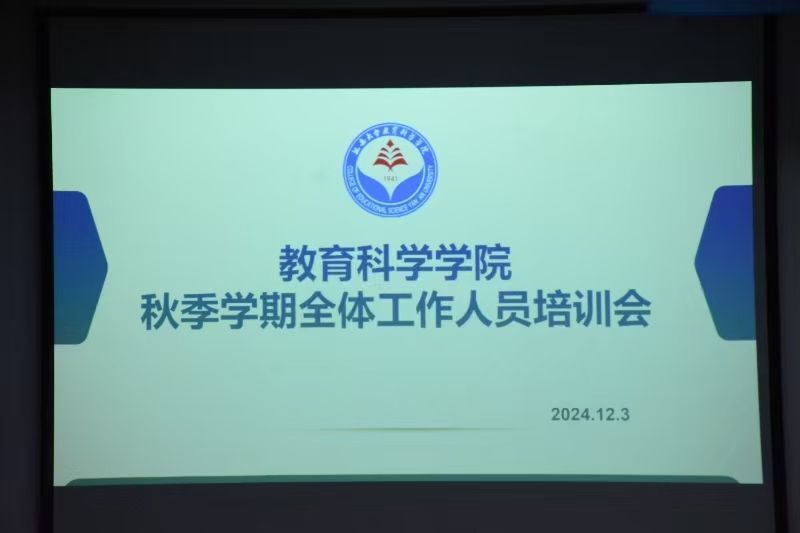 为深入学习党的二十届三中全会精神,贯彻落实全国学联第二十七届主席团第五次会议精神,深化新时代学联学生会改革和建设,提高我院学生会组织工作人员的政治素养和理论水平,教科院于12月3日晚上在如心楼二楼会议室召开教科院秋季学期全体工作人员培训会,本次培训会由辅导员王浩老师指导,学生会全体成员参与,会议由学生会主席团成员万译阳主持。